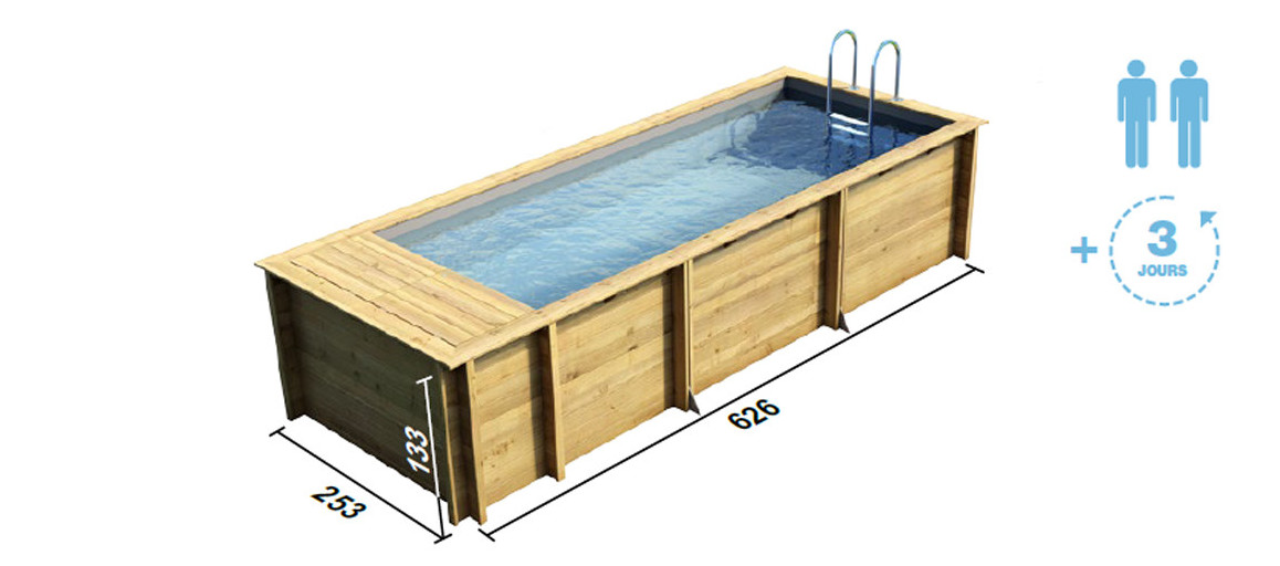 - La structure est fabriquée en authentique pin du Nord massif, le must en la matière qui garantit sa longévité et son investissement durable. Les margelles quand à elle sont en épicéa classe 3.