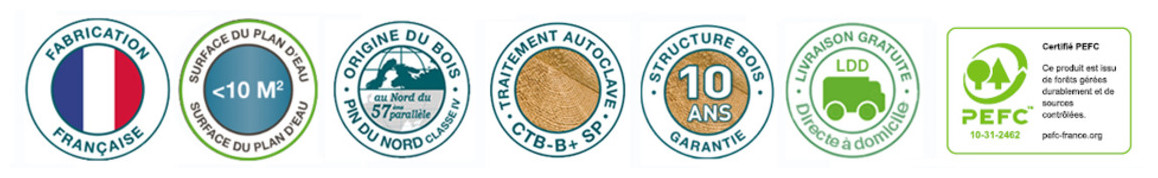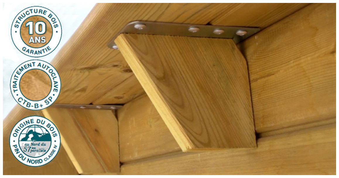 Les structures Pool'n Box sont traitées autoclave CTB B+ SP, le plus haut niveau de traitement après usinage et lui confère toutes les qualités pour un usage en extérieur au contact du sol.