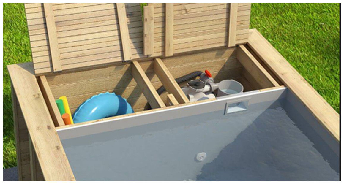 Outre son bois traité en autoclave et ses finitions, elle est équipée d'un box de rangement verrouillable sous la margelle vraiment astucieux ! Idéal pour ranger en un clin d'?il les accessoires de nettoyage, les ballons et autres jeux gonflables des enfants mais aussi pour dissimuler la filtration et les tuyauterie inesthétique ! En un rien de temps votre espace de baignade est beau et net !