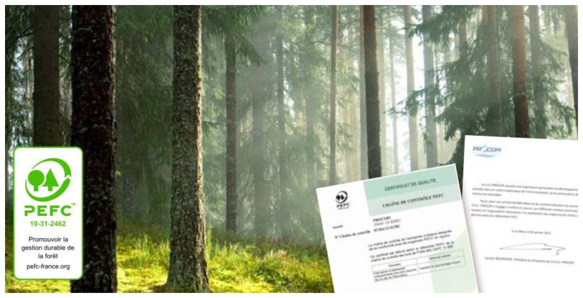 - Bois certifié PEFC (issu de forêts gérées durablement)