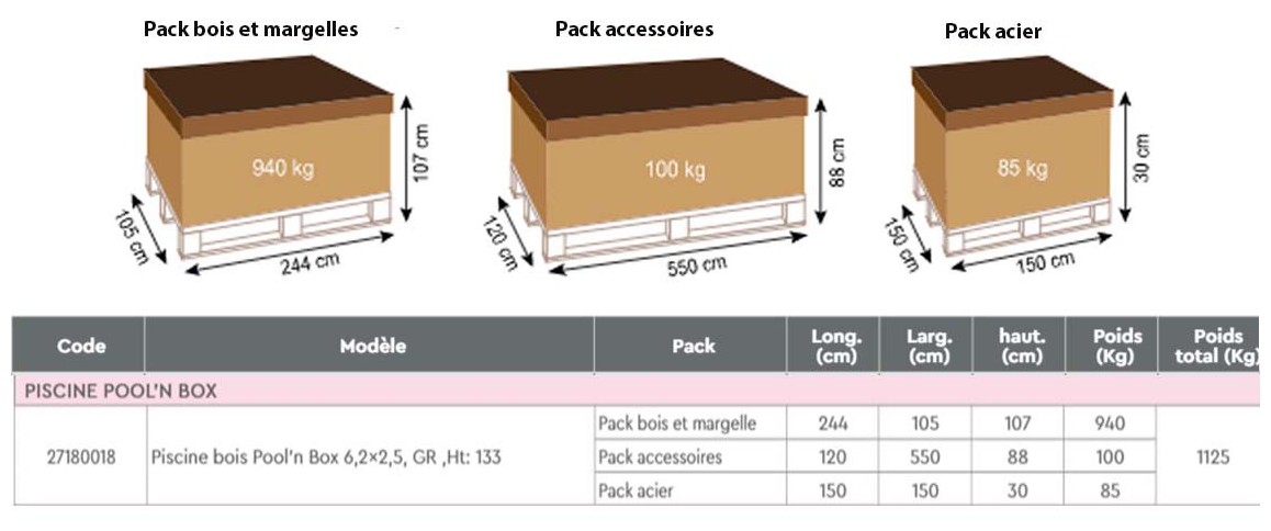 La livraison de votre kit piscine est effectuée par camion hayon, camion grue ou camion avec chariot embarqué.