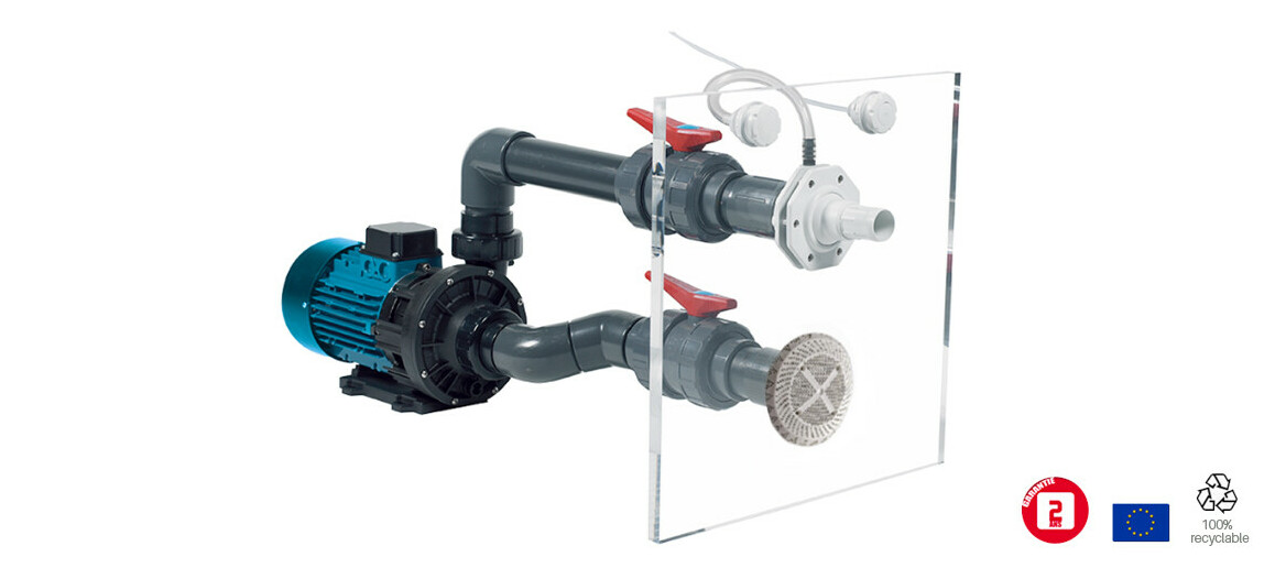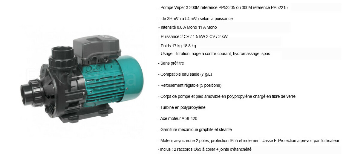 - Pompe compatible eau salée (7 g/l max.)