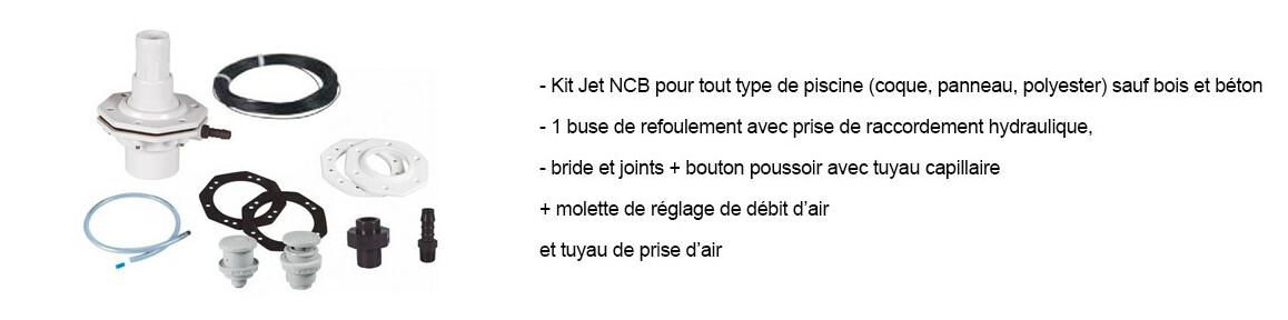 - 1 buse de refoulement pour tout type de piscine (Kit jet NCB) possibilité d'orientation de la buse.