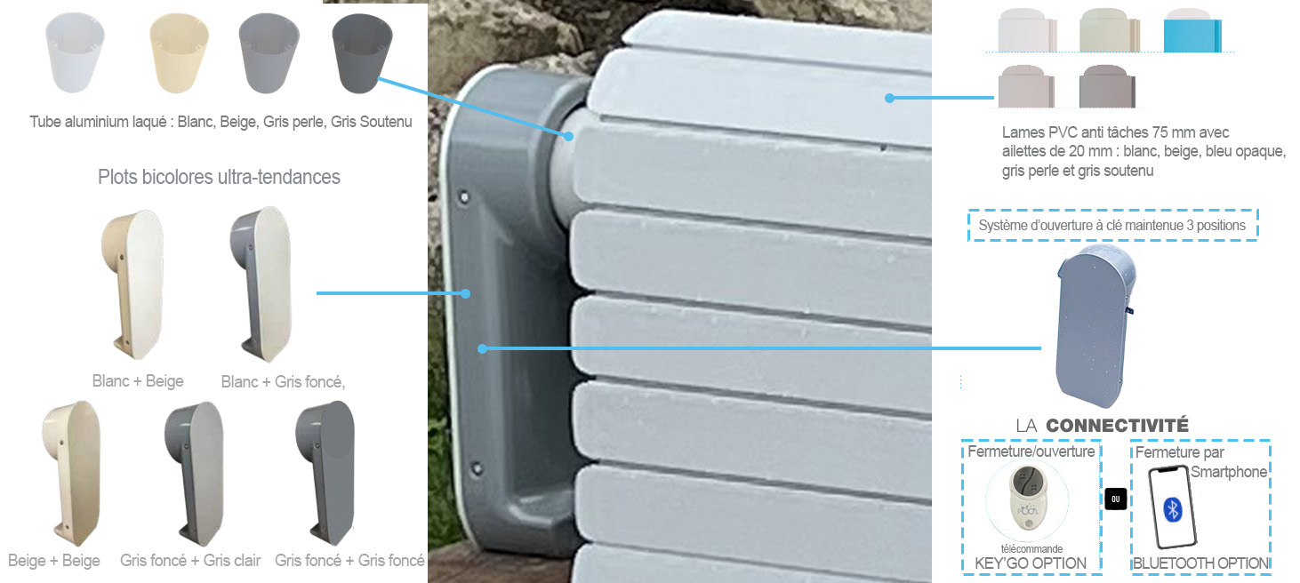 - Réduction des besoins d'entretien grâce au volet PVC qui limite la chute de débris dans l'eau.