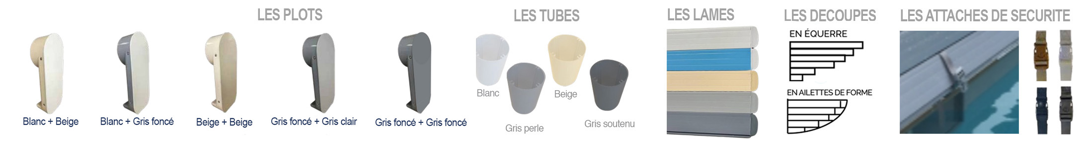 Optez parmi 5 coloris de plots bicolores disponibles - Blanc + Beige, Blanc + Gris Foncé, Beige + Beige, Gris foncé + Gris clair, Gris foncé + Gris foncé pour une personnalisation complète de votre volet selon vos préférences esthétiques.