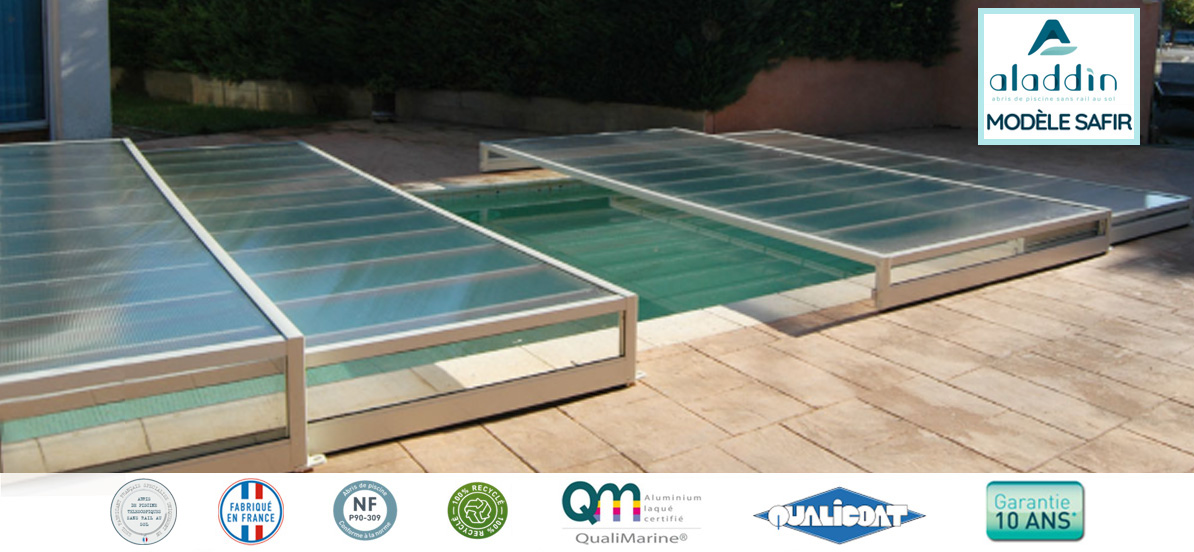 Abri piscine Safir : discret, plat et sécurisé pour votre bassin.