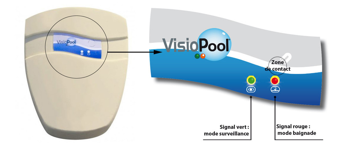 - Visio analyse les mouvements d'eau dans votre piscine et sait distinguer les ondes parasites (cascade, filtration, pluie, vent) de celles émises par la chute d'un corps.