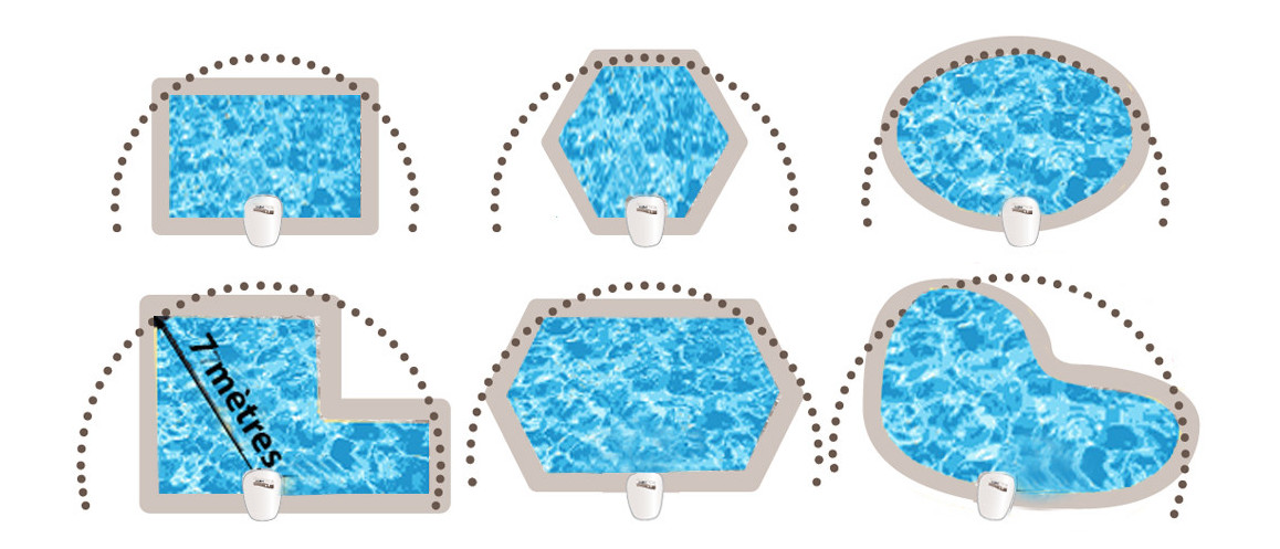 La détection dans la piscine est optimum dans un rayon de 7 mètres autour du capteur, au-delà il convient d'équiper le bassin d'un ou plusieurs détecteurs d'immersion supplémentaires.
