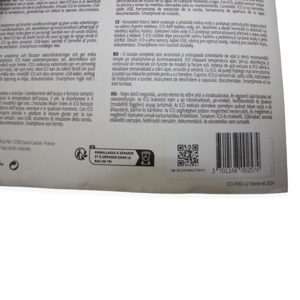 Analyseur connecté pour eau salée ICO POOL by ONDILO V.2 reconditionné. L'état est proche du neuf. Testé par notre service technique, en parfait état de marche. Bon état général. Garantie 2 ans.