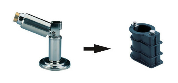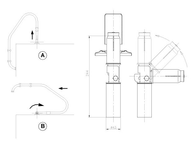 L'ancrage articulé inox Ø43 mm s'utilise avec l'ancrage de fixation en polypropylène également disponible dans cette catégorie.