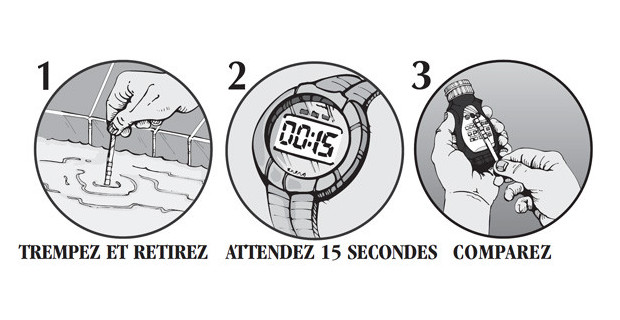 Trempez, comparez, en fonction de la couleur vous saurez comment agir pour l'équilibre de votre eau.