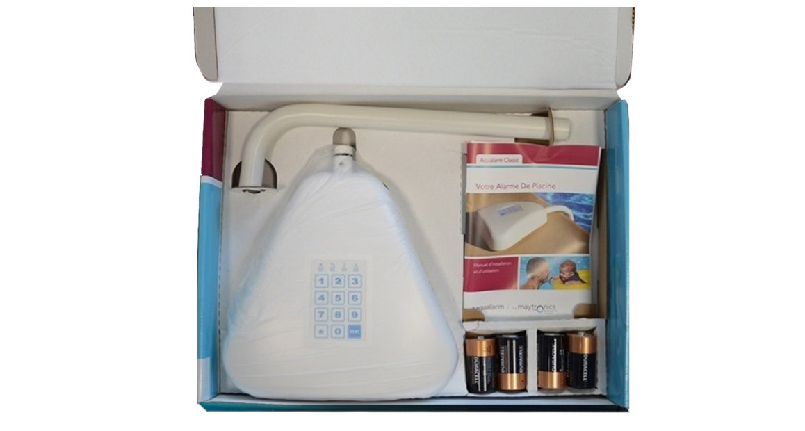 Aqualarm s'installe très simplement sans raccordement électrique, ni réglage particulier. Lorsque vous souhaitez vous baigner, il vous suffit de désactiver la surveillance en tapant votre code confidentiel (nul besoin de chercher une clé ou une télécommande). Après la baignade, la remise en route est automatique. Vous pouvez néanmoins réactiver manuellement la surveillance.