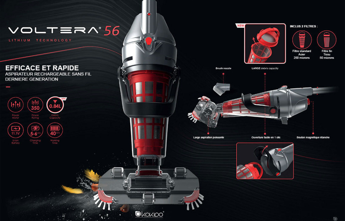 Caractéristiques - Aspirateur rechargeable Voltera 56