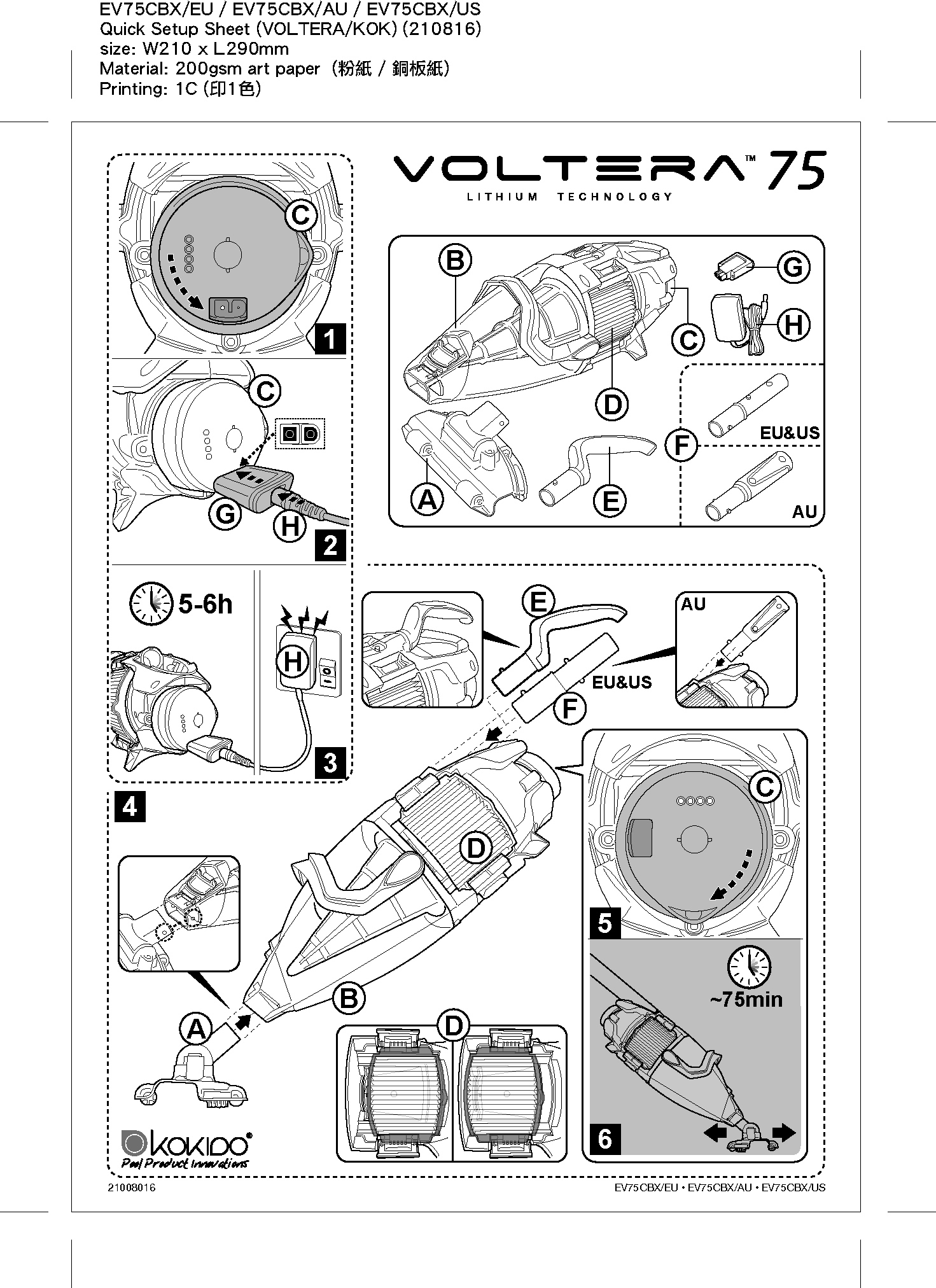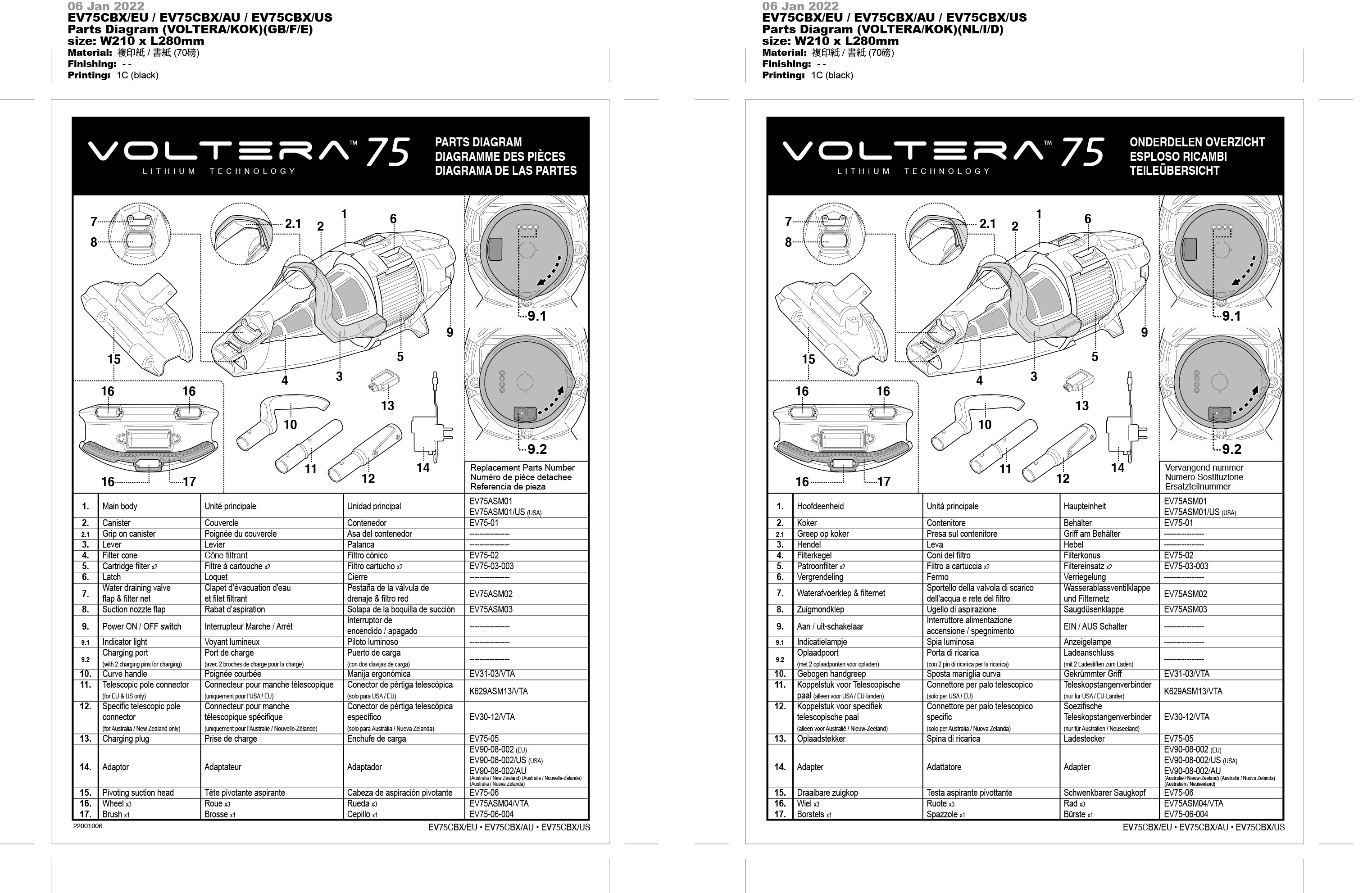 Aspirateur rechargeable Voltera 75 - Caractéristiques techniques
