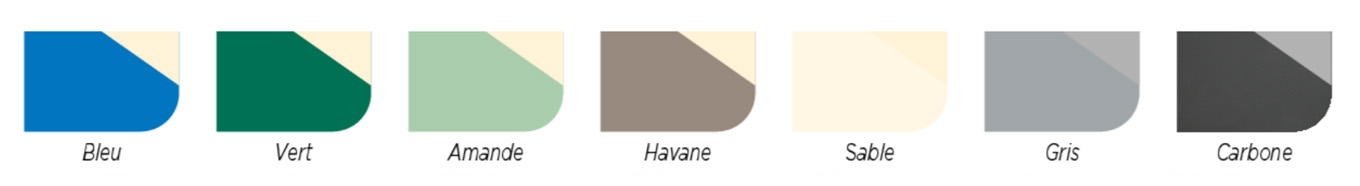 Faites votre sélection parmi les sept coloris disponibles pour trouver celui qui se mariera parfaitement avec votre environnement. Ces teintes sont appliquées en laque sur la face visible et en couleur sable sur l'envers afin de prévenir toute décoloration sur les margelles. Attention, l'envers est systématiquement gris clair pour les coloris gris et carbone. Pour les autres, l'envers est systématiquement sable.