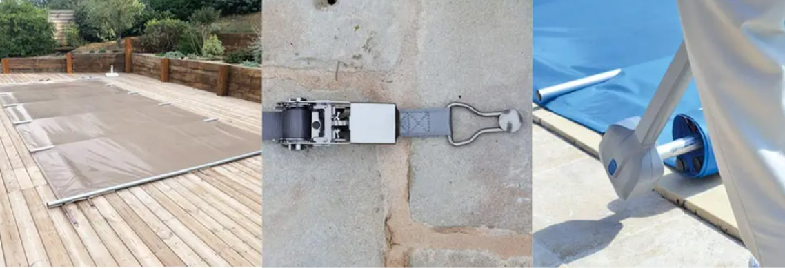 - Utilisez les sangles équipées de cliquets pour tendre la couverture.