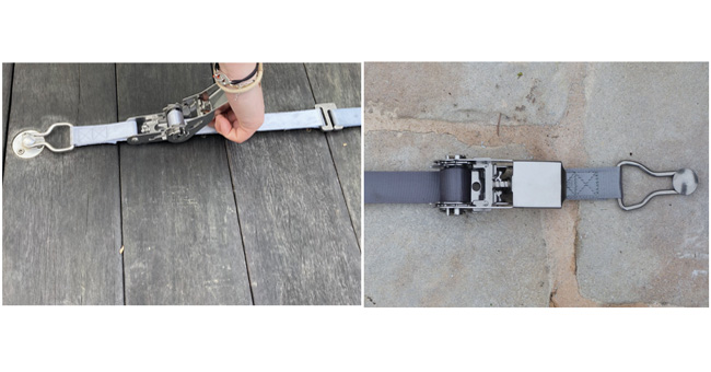 - Côté enroulement : Sangles réglables avec cliquets et crochets S