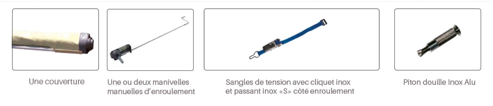 - Un sac contenant les accessoires requis pour l'installation de la couverture