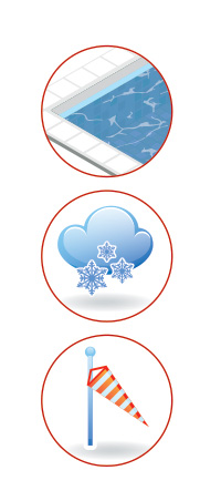 - Pendant la saison hivernale, prenez toutes les précautions nécessaires pour empêcher le débordement de l'eau (en prévoyant un système de trop-plein) et pour éviter le gel des tuyauteries et des pièces à sceller. En cas d'accumulation de neige dépassant 10 cm, déneigez immédiatement la couverture ou enroulez là préalablement.