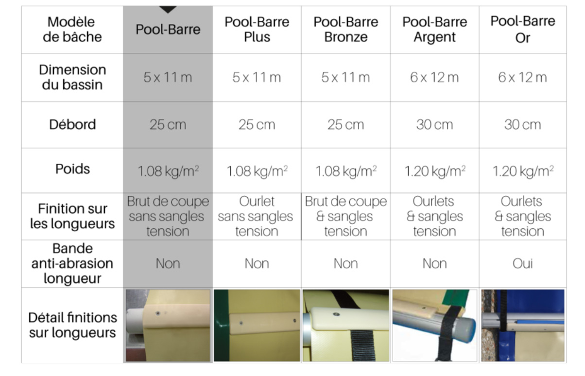 Bâche piscine Pool-Barres Bronze - Caractéristiques techniques