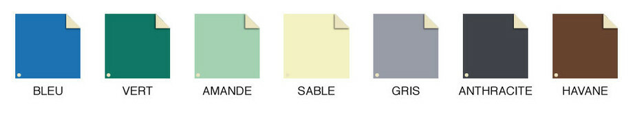 - La bâche Pool-Barre existe en 7 couleurs : bleu, vert, amande, sable, gris, gris moyen et havane. (Le recto et le verso de la bâche sont identiques)