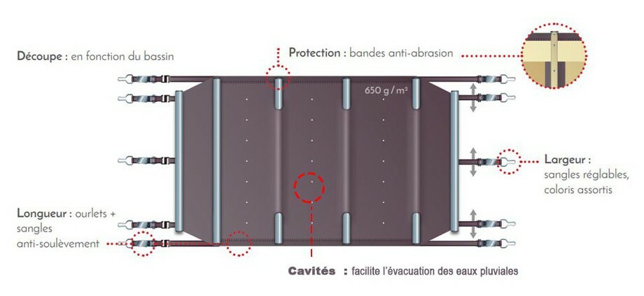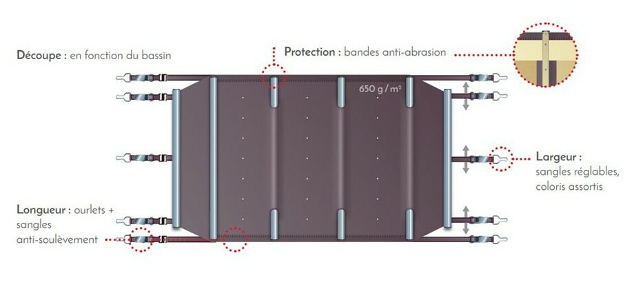 - Economisez de l'eau et de l'énergie : l'été, votre bâche à barres limite l'évaporation de l'eau, et permet de la maintenir à la température voulue.