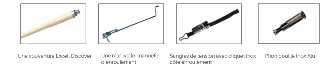 - Un sac renfermant les accessoires requis pour l'installation de la couverture