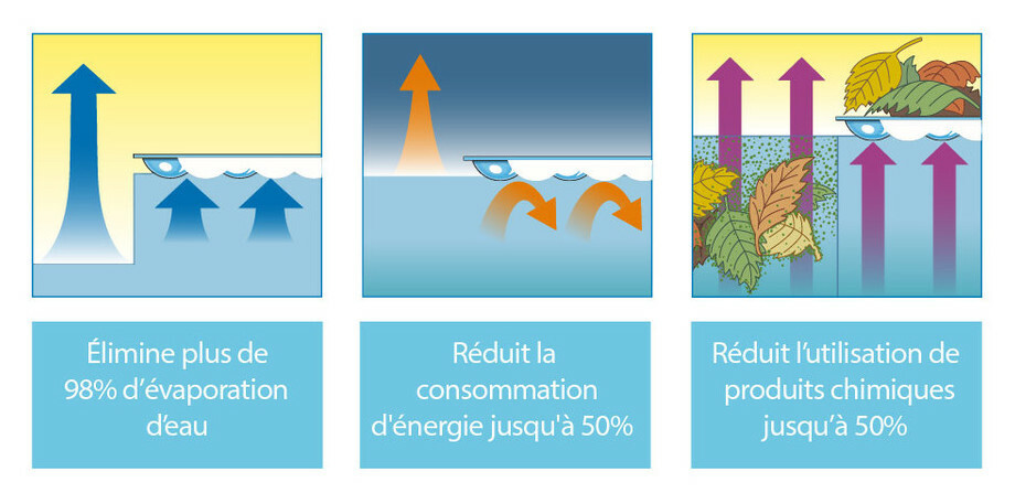 - Contribue à réduire jusqu'à 98% de l'évaporation