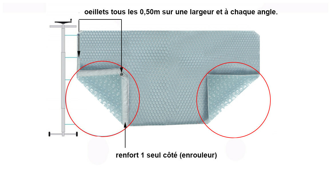 Il est fortement conseillé d'utiliser un enrouleur manuel de bâche à bulles.