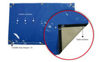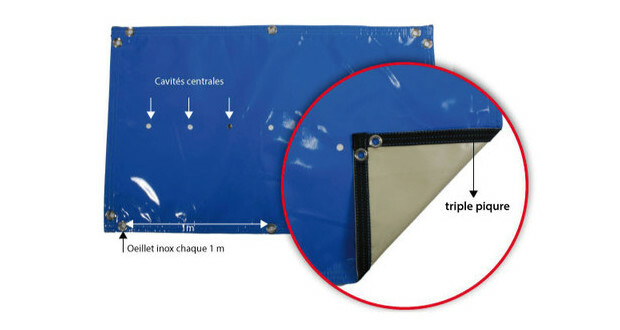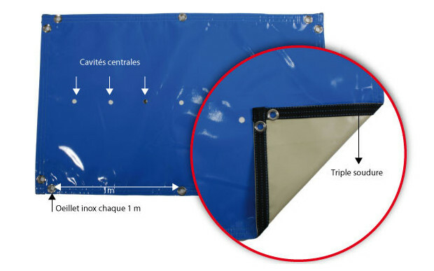 - Fabrication en toile polyester enduite PVC, traitée anti-UV et fongicide. Densité 550 g/m²