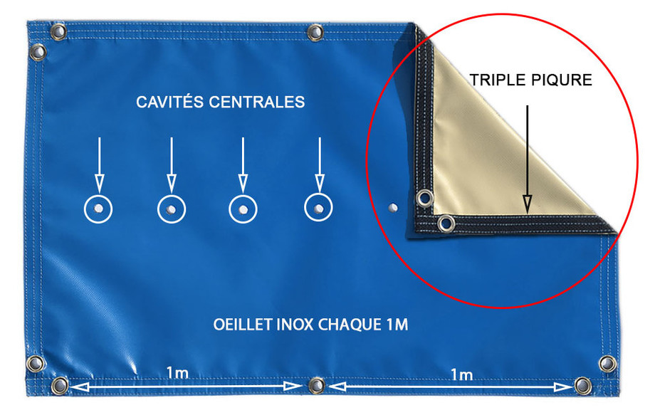 - Oeillets chaque 1m