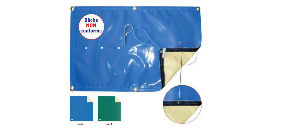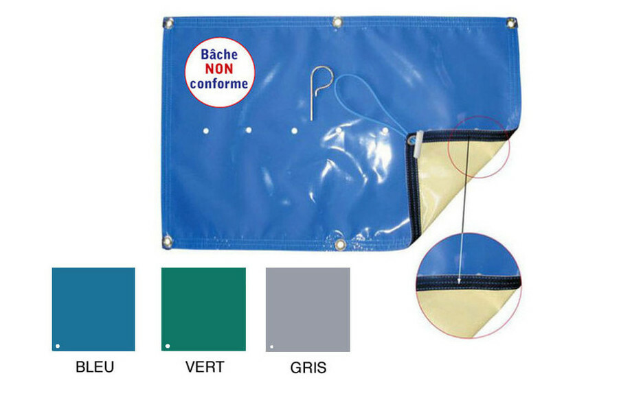 - Membrane polyester revêtue PVC anti-cryptogamique et anti-UV, coloris bleu ou vert.