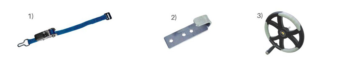 1) Sangles à cliquet + anneaux inox + Crochet S