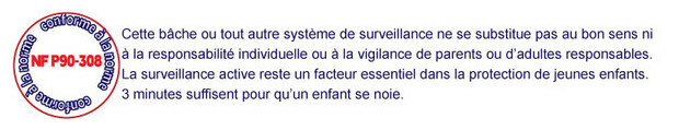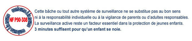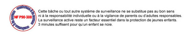 Les bâches à barres de sécurité pour piscines bois Woodfirst Original sont conformes avec les normes en vigueur relatives à la protection des piscines à usage individuel ou collectif (AFNOR NF P 90 - 308). Tests effectués par le Laboratoire National d'Essais.