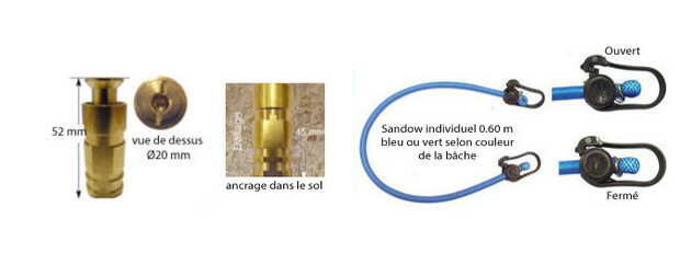 - Sandows individuels (couleur en fonction de la bâche, bleu ou vert), dimension 60 cm.