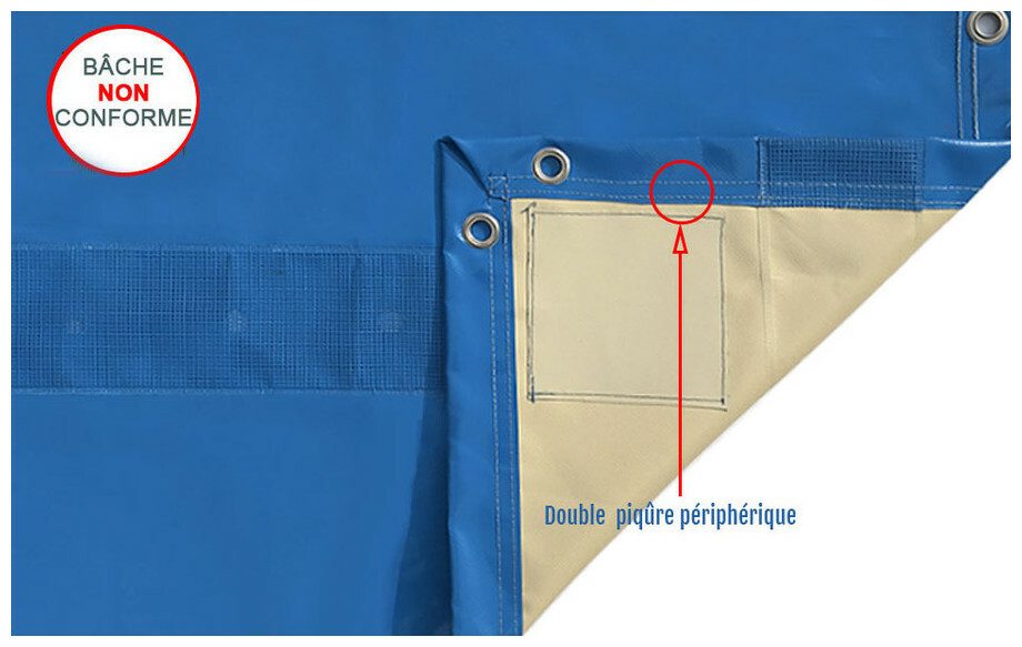 - Montage double soudure, coins consolidés par doublure PVC.