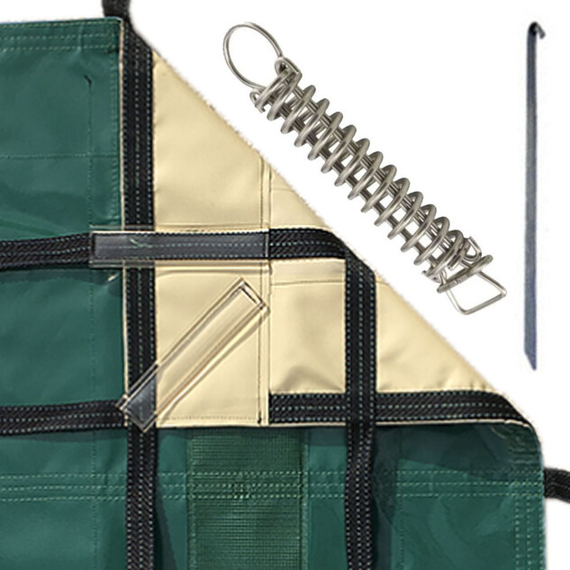 - Résistance et tenue renforcées par quadrillage de sangles transversales et longitudinales (intervalle 1.5 m en largeur, et 1.1 m en longueur), doublées de PVC épais.