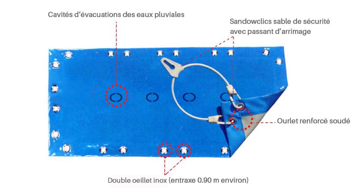 - Envers de la bâche : couleur sable pour éviter de décolorer les margelles