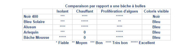 NB : Bâche isolante sur mesure. Le prix affiché à droite est par m².
