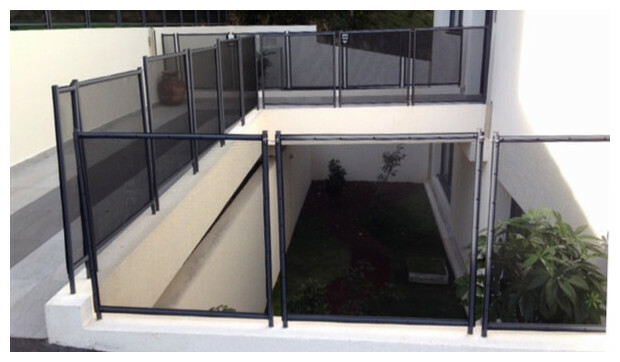 Solide et résistante, transparente pour mieux s’intégrer au paysage, cette barrière ne requiert aucun entretien, et protège les enfants efficacement.