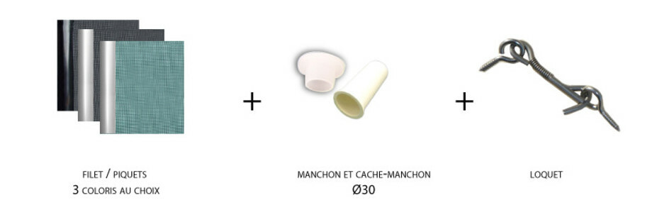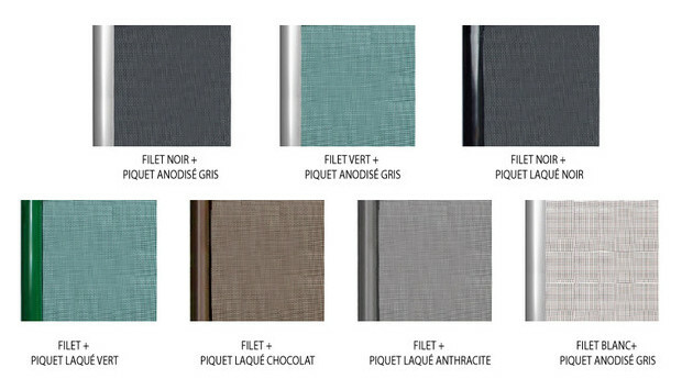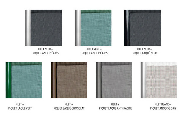 Le filet gris anthracite ne peut être monté que avec des piquets anodisés gris en 16 et 30 uniquement.