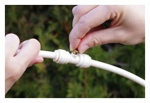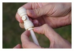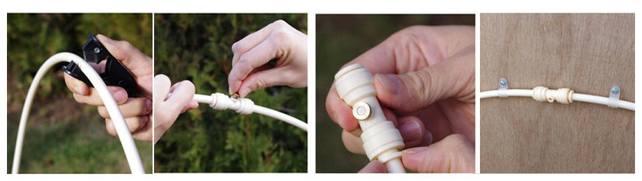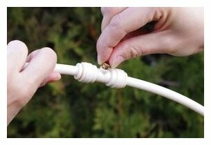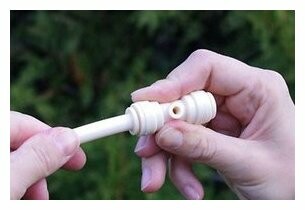 - Se branche directement entre le tuyau d'arrosage et le brumisateur.