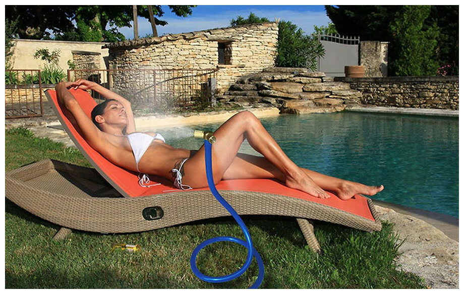 Un tuyau flexible à mémoire de forme qui vous permettra de vous rafraîchir ou que vous soyez en diffusant une brume de fines gouttelettes agréables et au confort idéal. Nomade et pratique, il s'installera toujours près de vous en s'enroulant autour d'un arbre, d'une chaise ou simplement posé non loin de votre transat pour des pauses fraîcheurs, sans se déranger jusqu'à la douche, lorsque les grosses chaleurs se feront sentir pendant vos séances de bronzage !