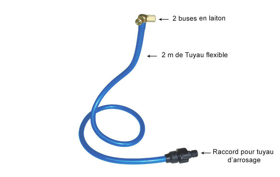 - Se branche directement entre le tuyau d'arrosage et le brumisateur.