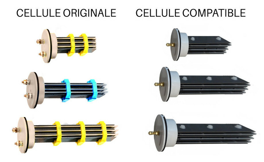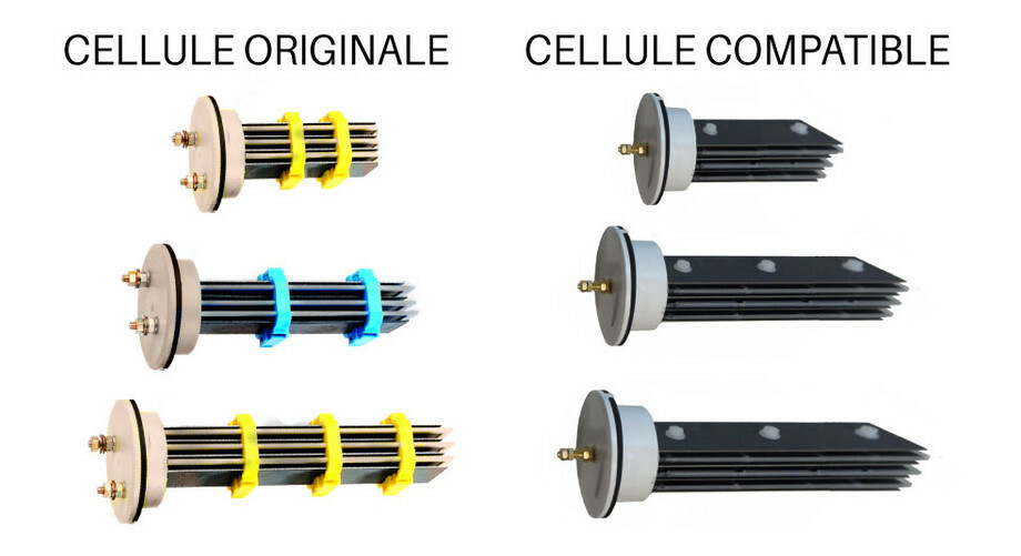 Cellules autonettoyantes à 7 ou 9 plaques, taux de sel 3 à 4.5 g/L.