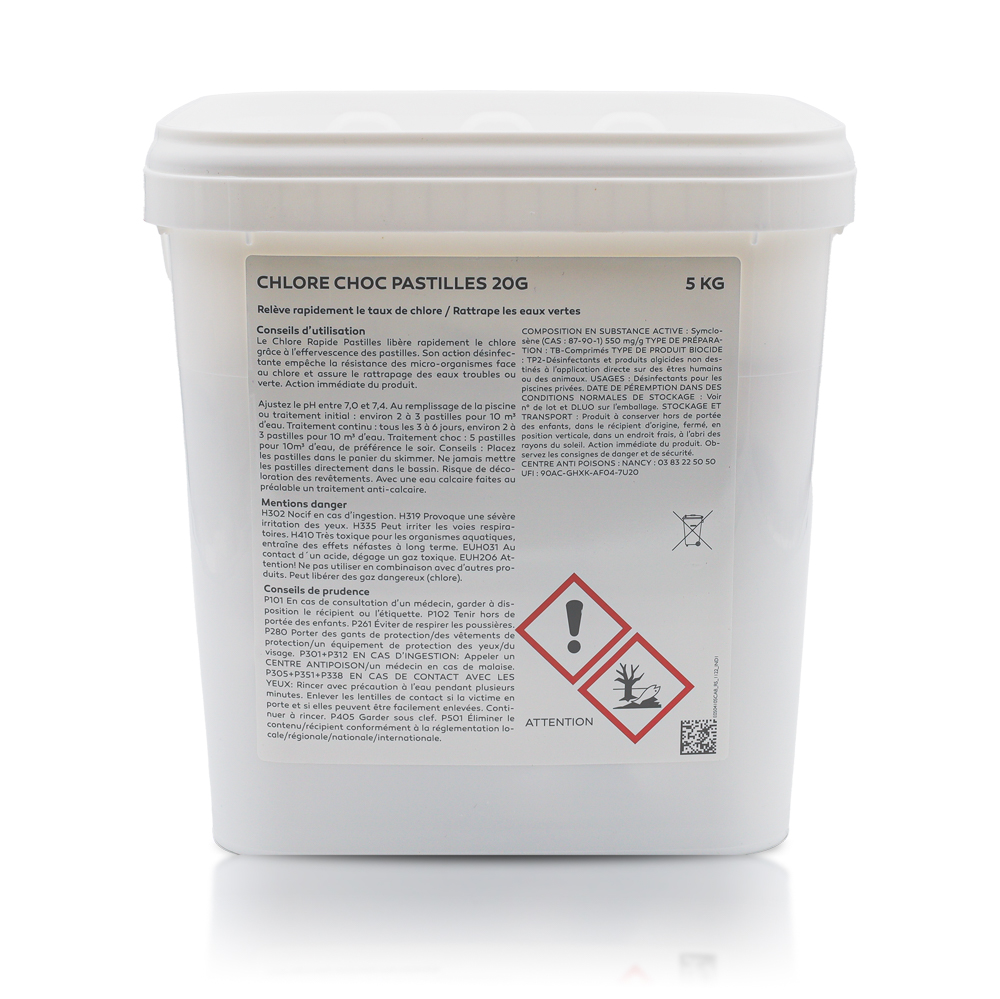 Il est recommandé de suivre les consignes suivantes pour l'utilisation des pastilles de chlore choc 20g .