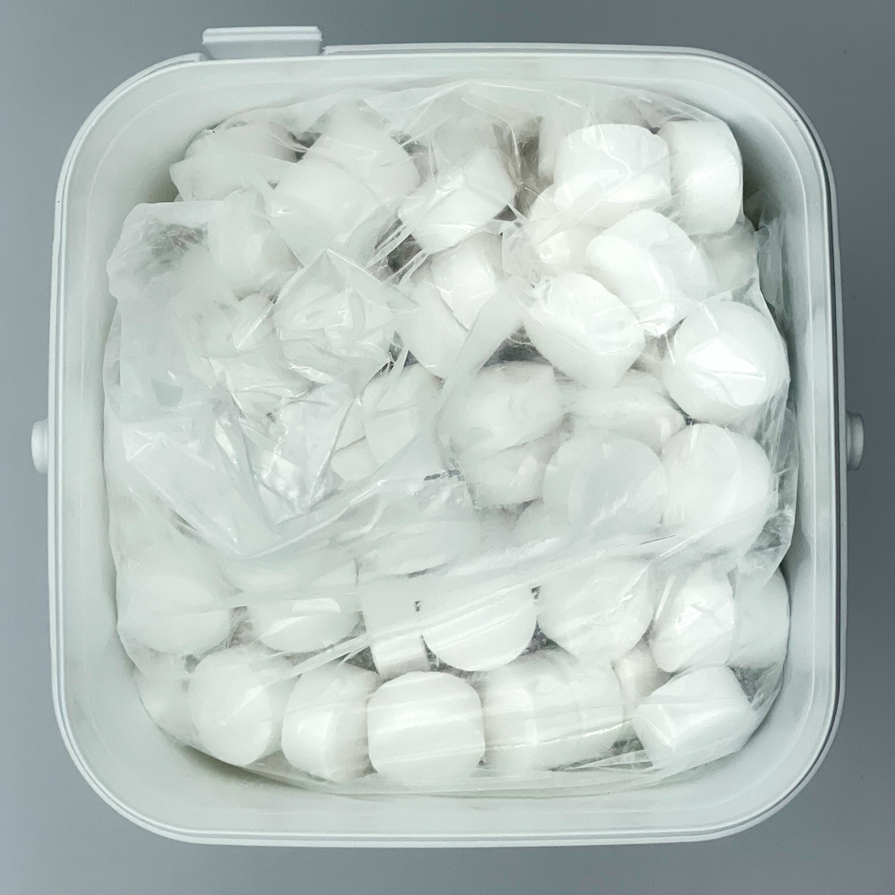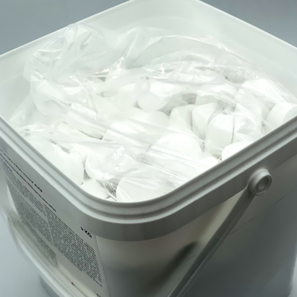 - Désinfectant pastilles à dissolution rapide titrant 50 % de chlore actif