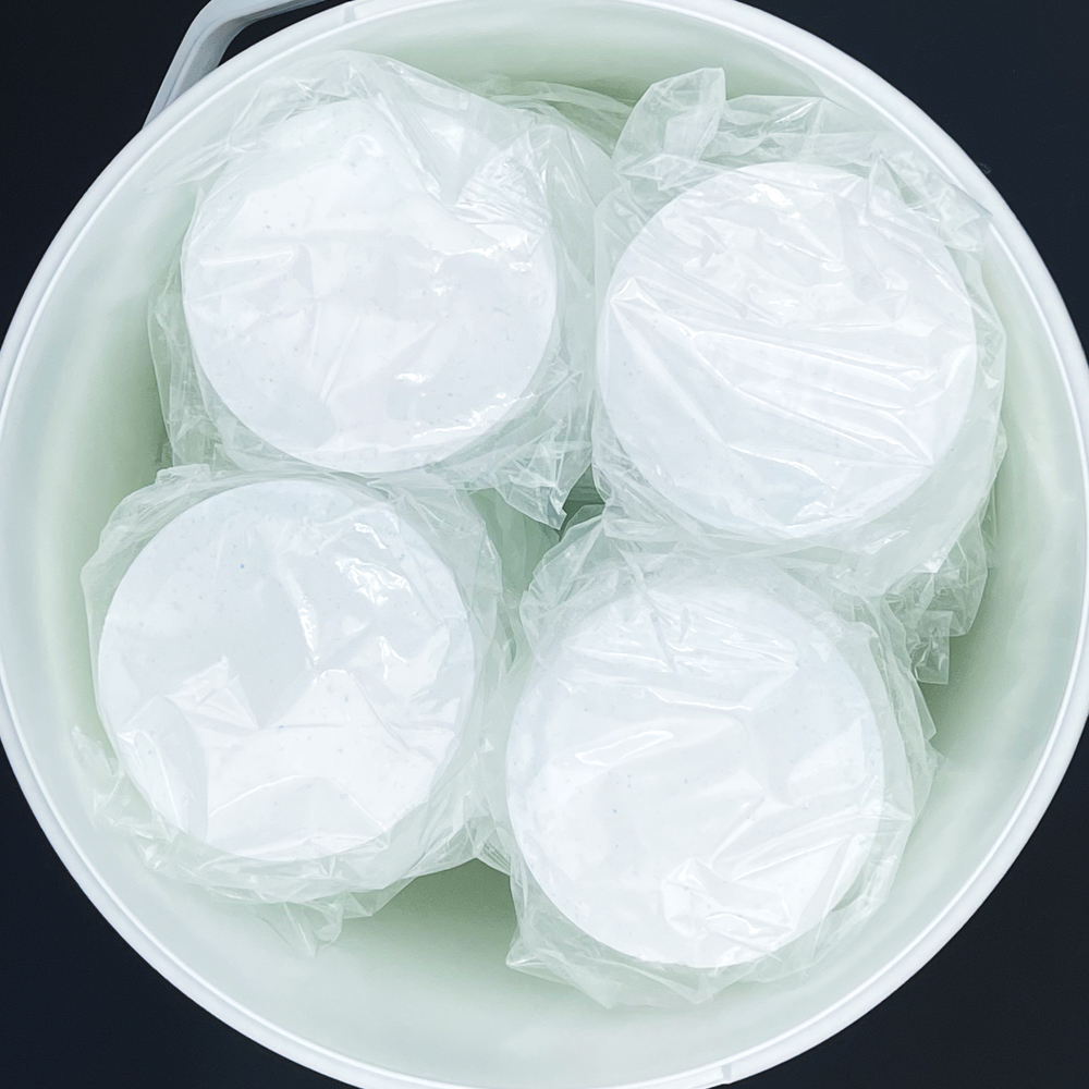 Chlore multifonctions est disponible en galets de 250g ou 500g. - Conditionnement en 1 carton = deux seaux de 5 kg chacun