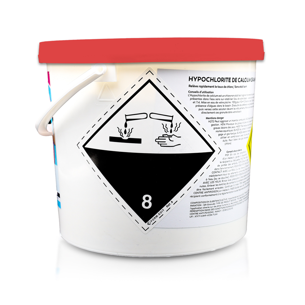 - Composition en substance active : Hypochlorite de calcium. 1000mg/g. CAS: 7778-54-3