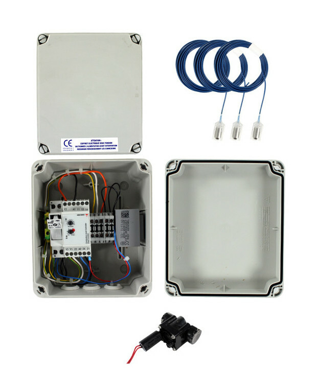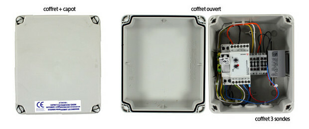 Coffret de régulation 3 sondes : Permet d'assurer la fonction de remplissage du bac tampon grâce aux 3 sondes.